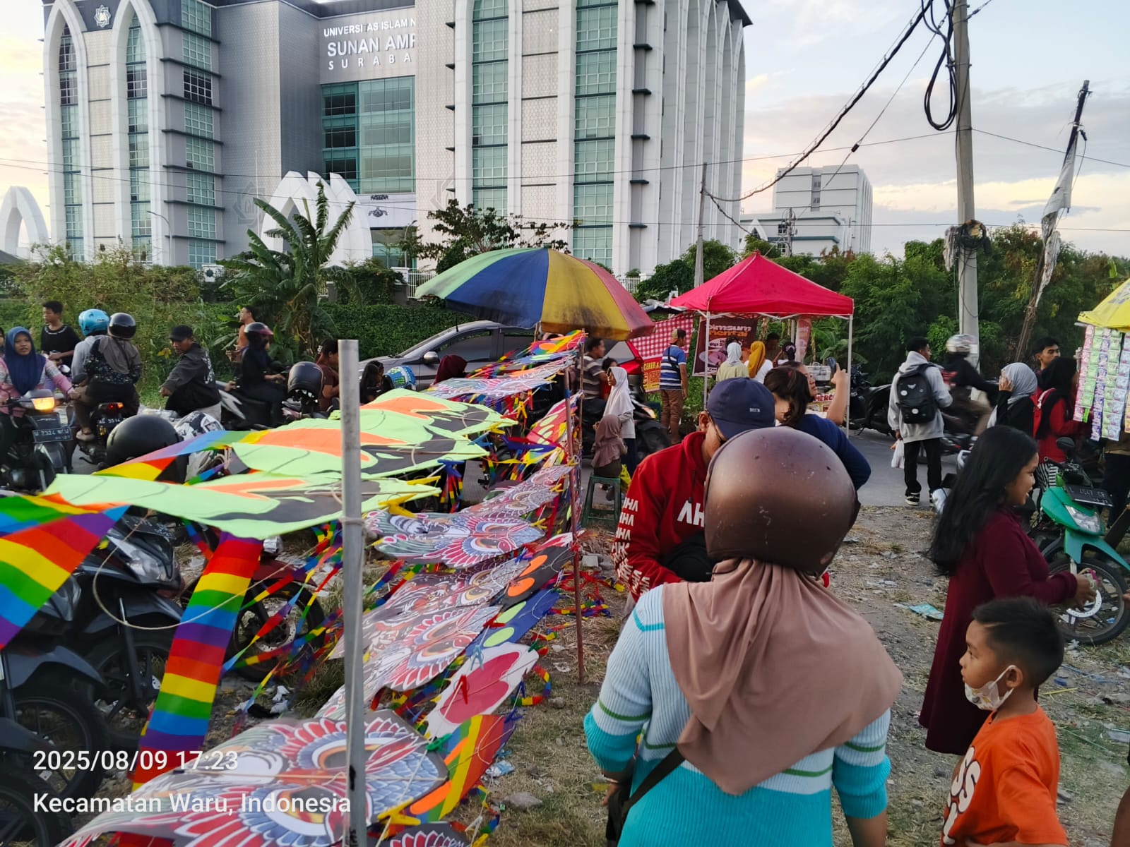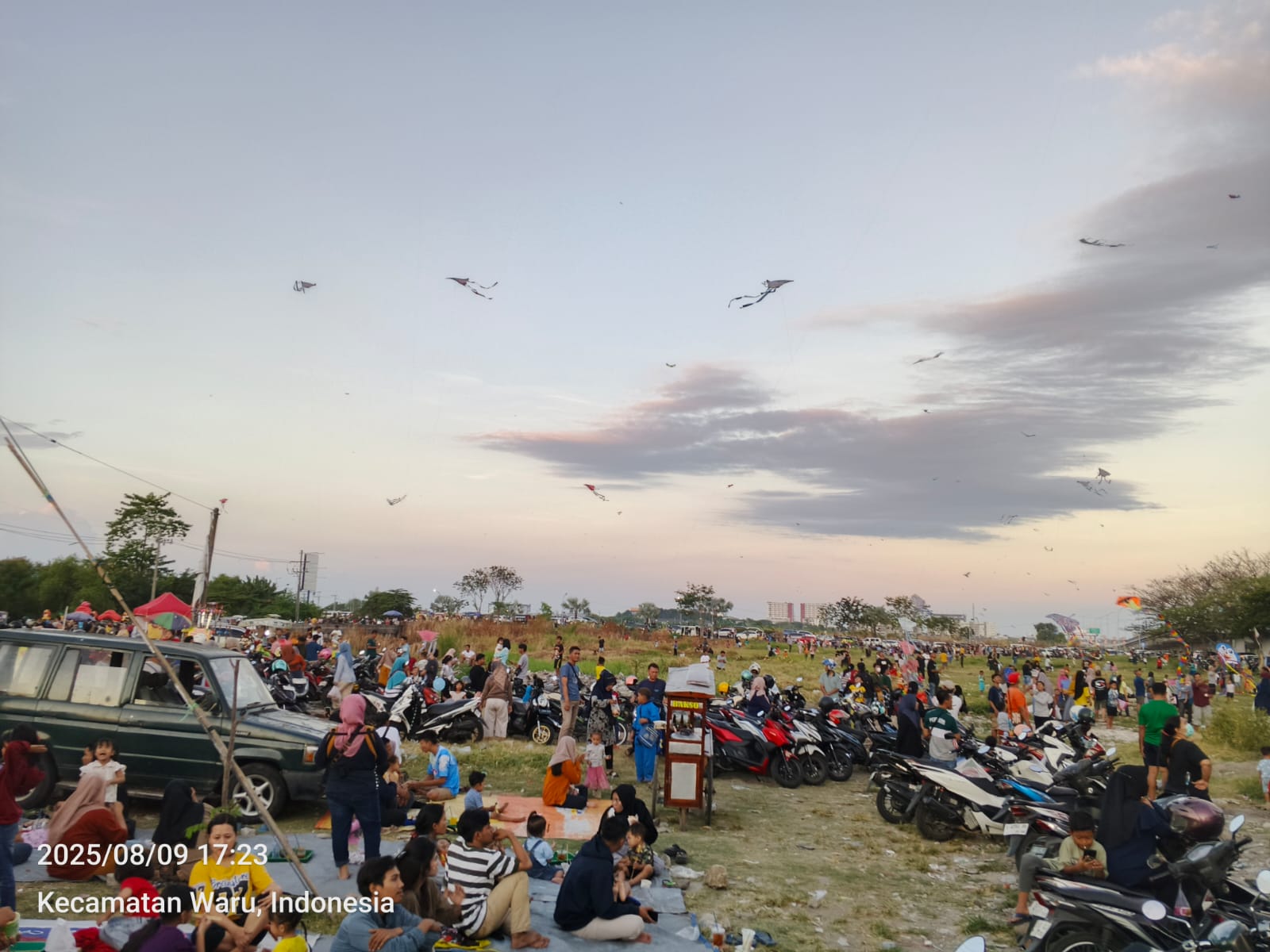 Sejak siang menjelang sore, jalan-jalan kecil menuju lapangan mulai dipadati kendaraan. Para pedagang musiman berderet di pinggir jalan, menawarkan layang-layang berbagai bentuk: naga, burung hantu, kupu-kupu, hingga karakter kartun populer. Harganya bervariasi, mulai dari belasan ribu rupiah untuk ukuran kecil hingga puluhan ribu untuk yang besar dan rumit.