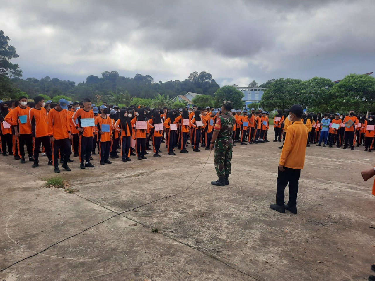Samarinda, paradigmanasional.id – Babinsa Koramil 01/Smd Ulu. Kodim 0901/Samarinda Serda Sulistiyo Bersama Bhabinkamtibmas Lok Bahu Aipda M Yazid memberikan materi PPBN dan pelatihan dasar PBB kepada siswa-siswi baru SMKN 15 Samarinda Jln. M. Nusriwan RT. 15 Kelurahan Lok Bahu Kecamatan Sungai Kunjang, Rabu (13/7/22).