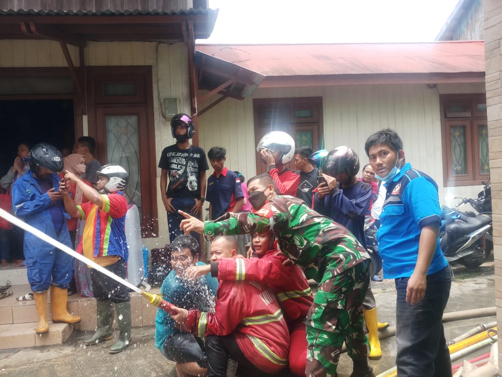 Babinsa Kelurahan Telok Lerong Ulu Bantu Padamkan Api Yang Membakar Rumah Warga
