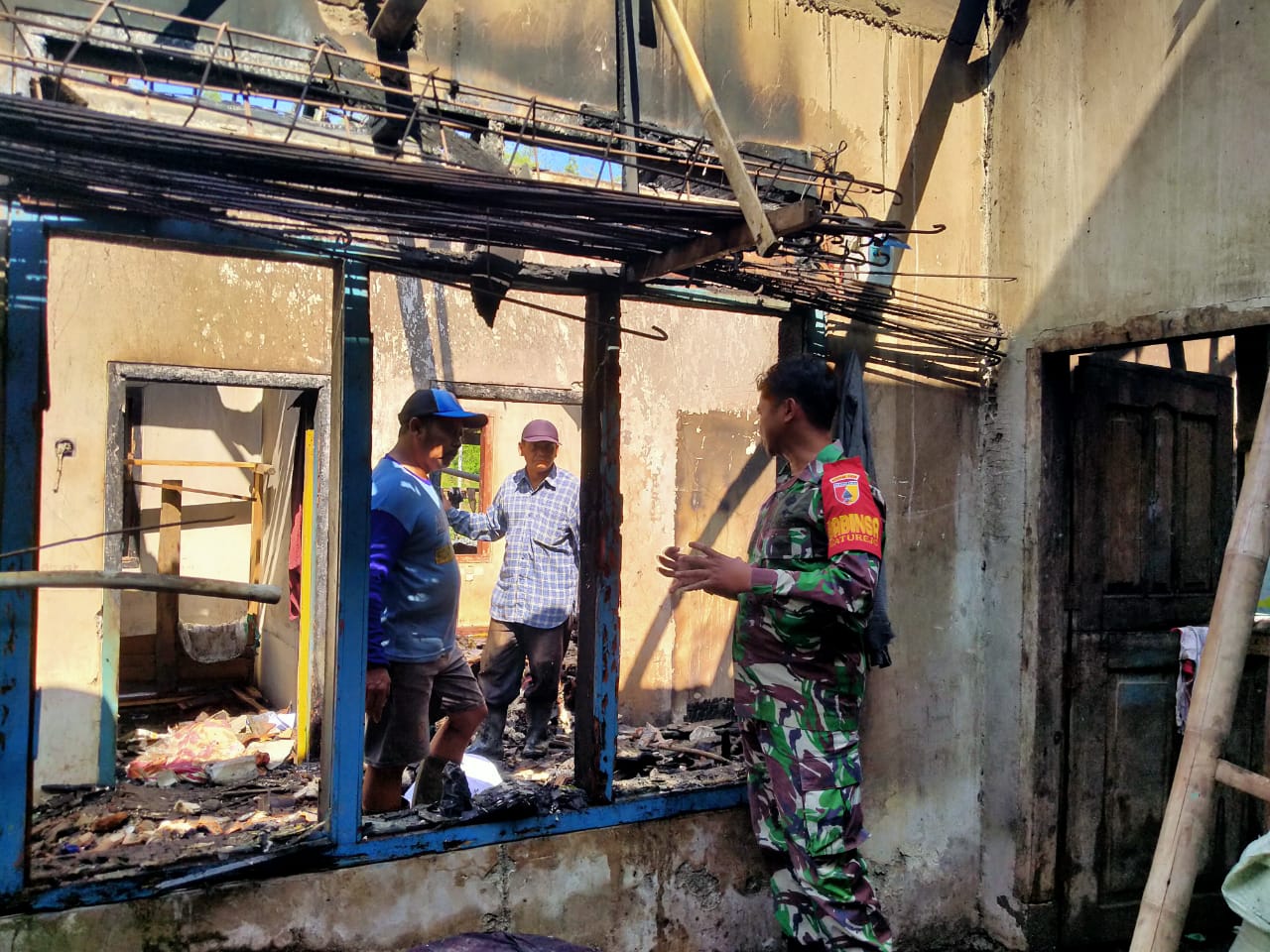 Babinsa Koramil 0818/04 Ngantang Datangi TKP Kebakaran Rumah