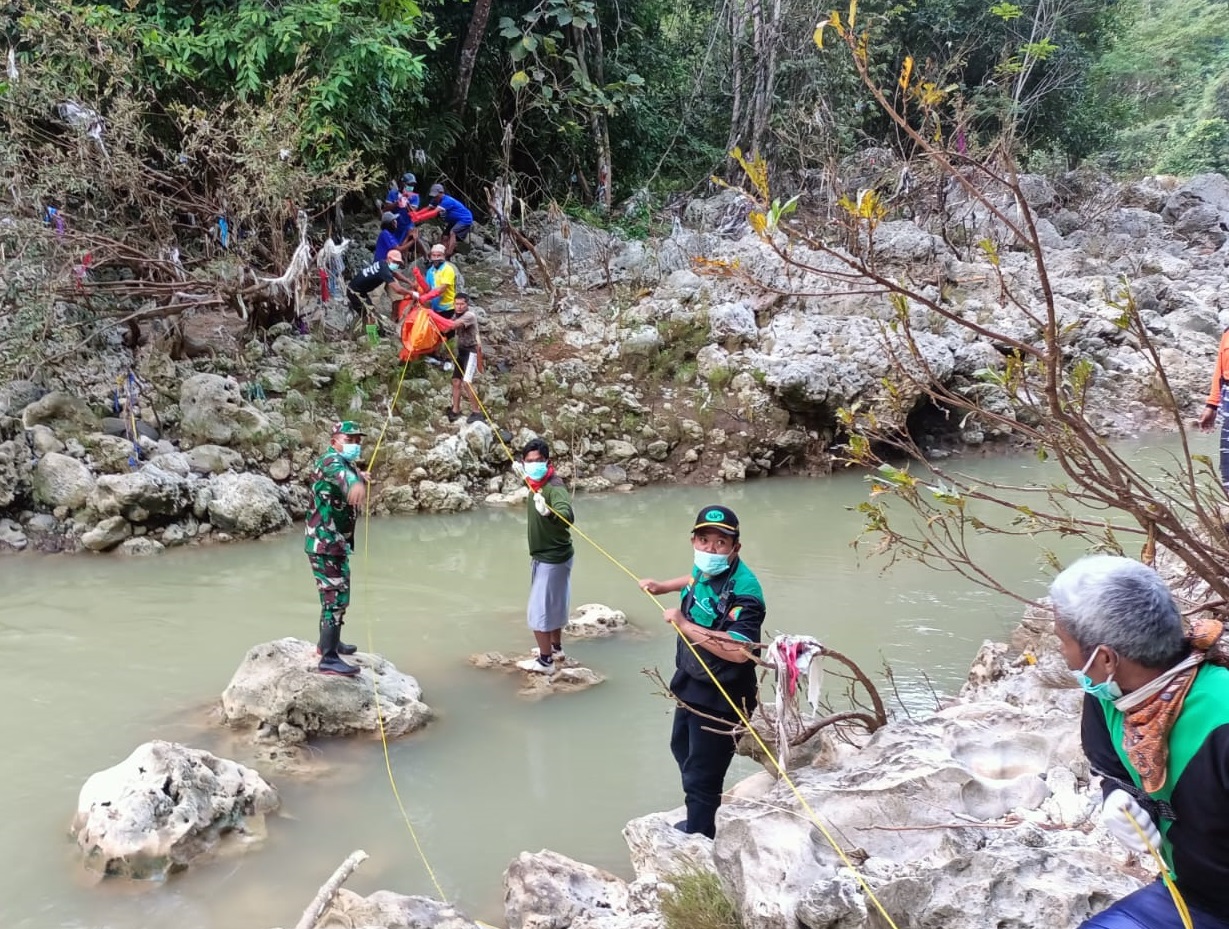 “Selanjutnya, evakuasi korban berlangsung dramatis, pasalnya korban sudah lima hari hilang dan terseret arus sungai hingga sampai di sungai di kecamatan Gedangan, dengan lokasi yang cukup terjal Tim gabungan TNI – Polri, SAR dan relawan bersama warga segera mengevakuasi Namun demikian medan yang terjal dan cuaca yang mendung bukan penghalang bagi Tim Gabungan untuk mengangkat jenazah. Dengan semangat dan kerjasama yang solid, alhasil korban berhasil diangkat kemudian dimasukkan dalam kantung dan mobil jenazah,” ungkap Serka Jimin Babinsa Koramil Bantur.