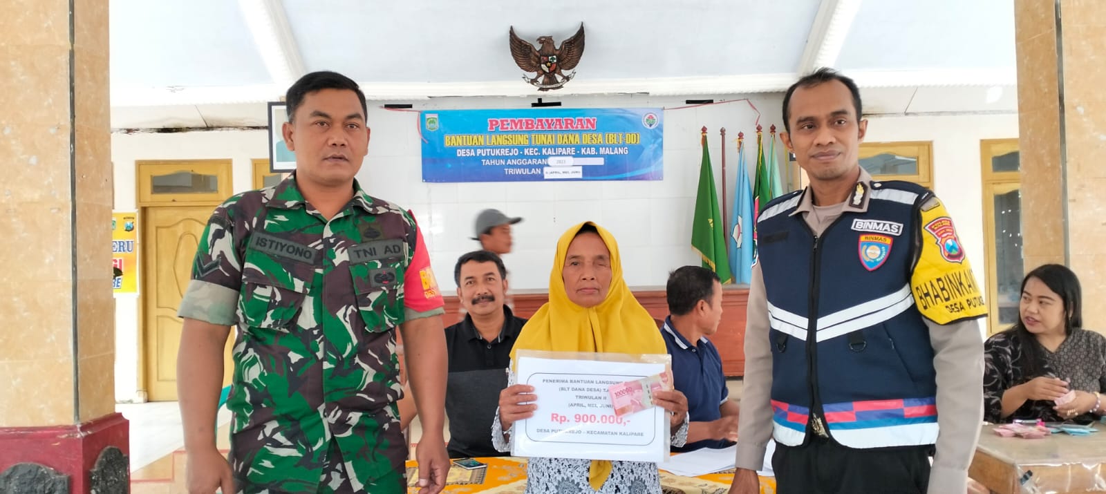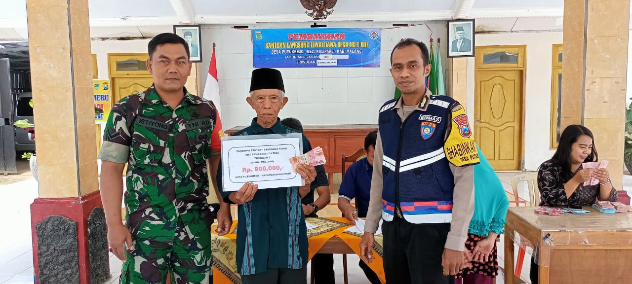 Babinsa Koramil 0818/13 Kalipare Serda Istiyono Mendampingi Pembagian BLT-DD Tahun 2023 di Desa Putukrejo, Kabupaten Malang