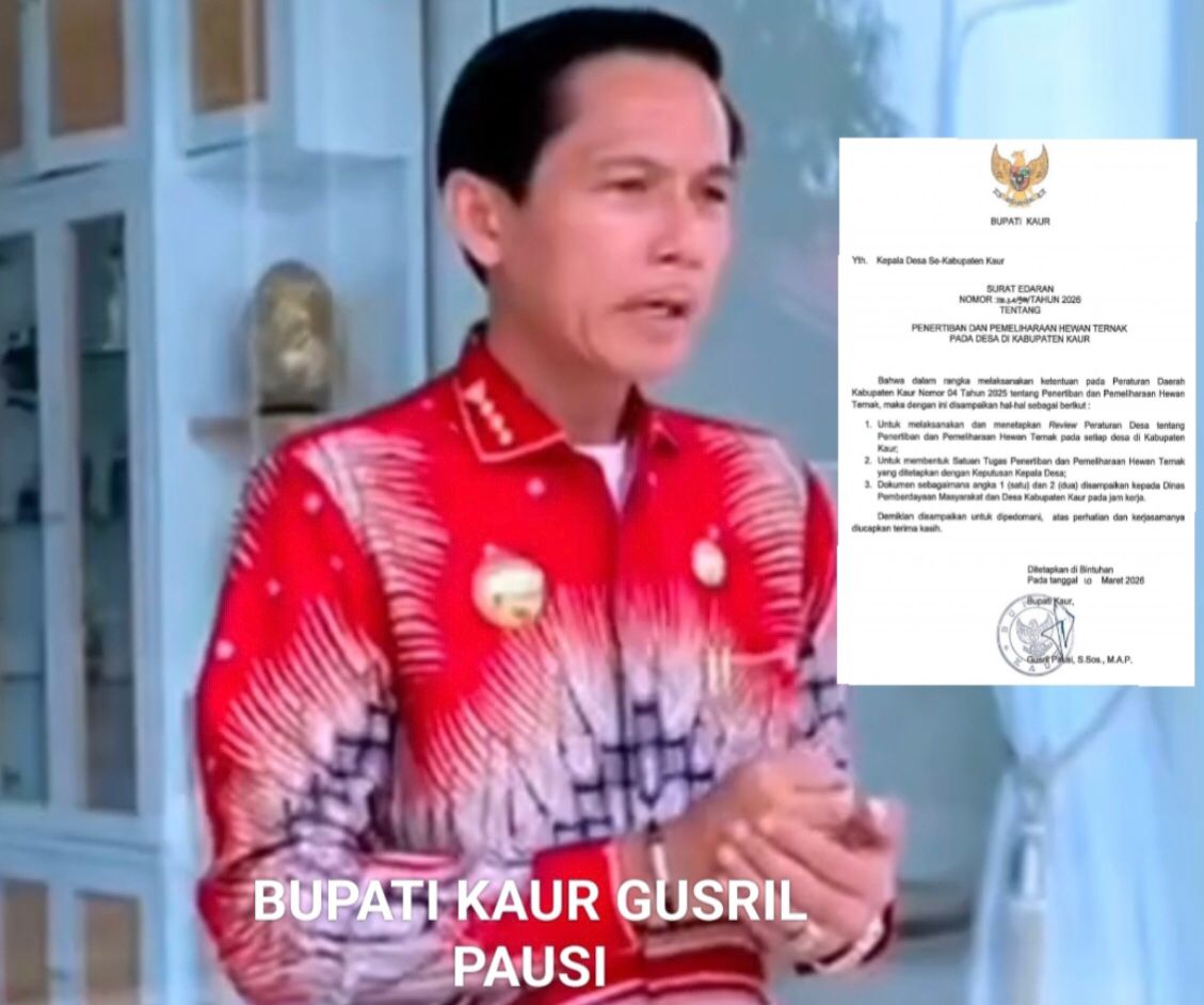 Bupati Kaur Keluarkan Surat Edaran Instruksikan Seluruh Kepala Daerah Perketat Pengawasan Hewan dan Ternak
