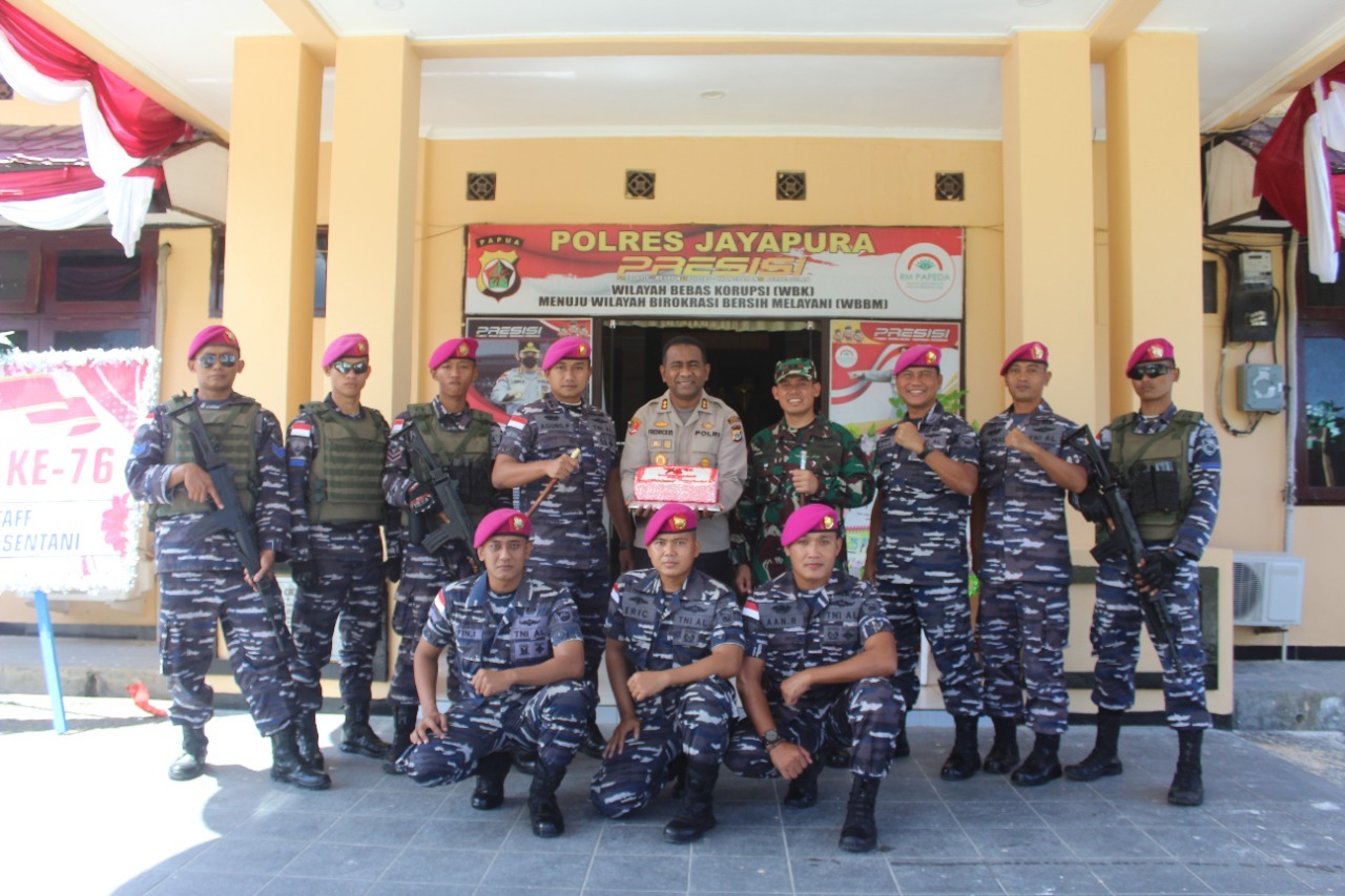 Dalam kegiatan tersebut Danyonmarhanlan X Jayapura Letkol Marinir Agung Prasetyo, M.Tr.Opsla memberikan kue ulang tahun dan karangan bunga. Kapolres Kabupaten Jayapura AKBP Fredrickus W.A Maclarimboen S.IK., MH., menerima langsung ucapan selamat dan karangan bunga dari prajurit Yonmarhanlan X Jayapura Pasmar 3 serta menyampaikan rasa terimakasih kepada keluarga besar Korps Marinir terutama Yonmarhanlan X Jayapura Pasmar 3 atas ucapan HUT Ke-76 Bhayangkara.