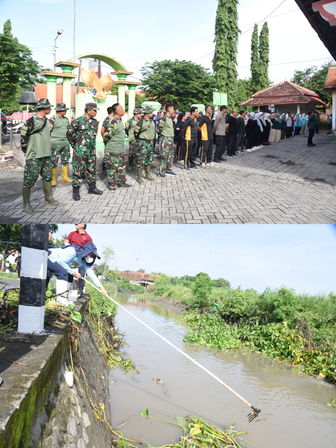 Beberapa OPD Sidoarjo menangani satu sungai. Mereka dibantu anggota Koramil dan anggota Polsek setempat. Seperti yang dilakukan ASN Bappeda Sidoarjo bersama Dinas Pangan dan Pertanian Sidoarjo dan Kantor Kecamatan Prambon pagi tadi di Avoer Kajartengguli Kecamatan Prambon, Jumat, (10/1).