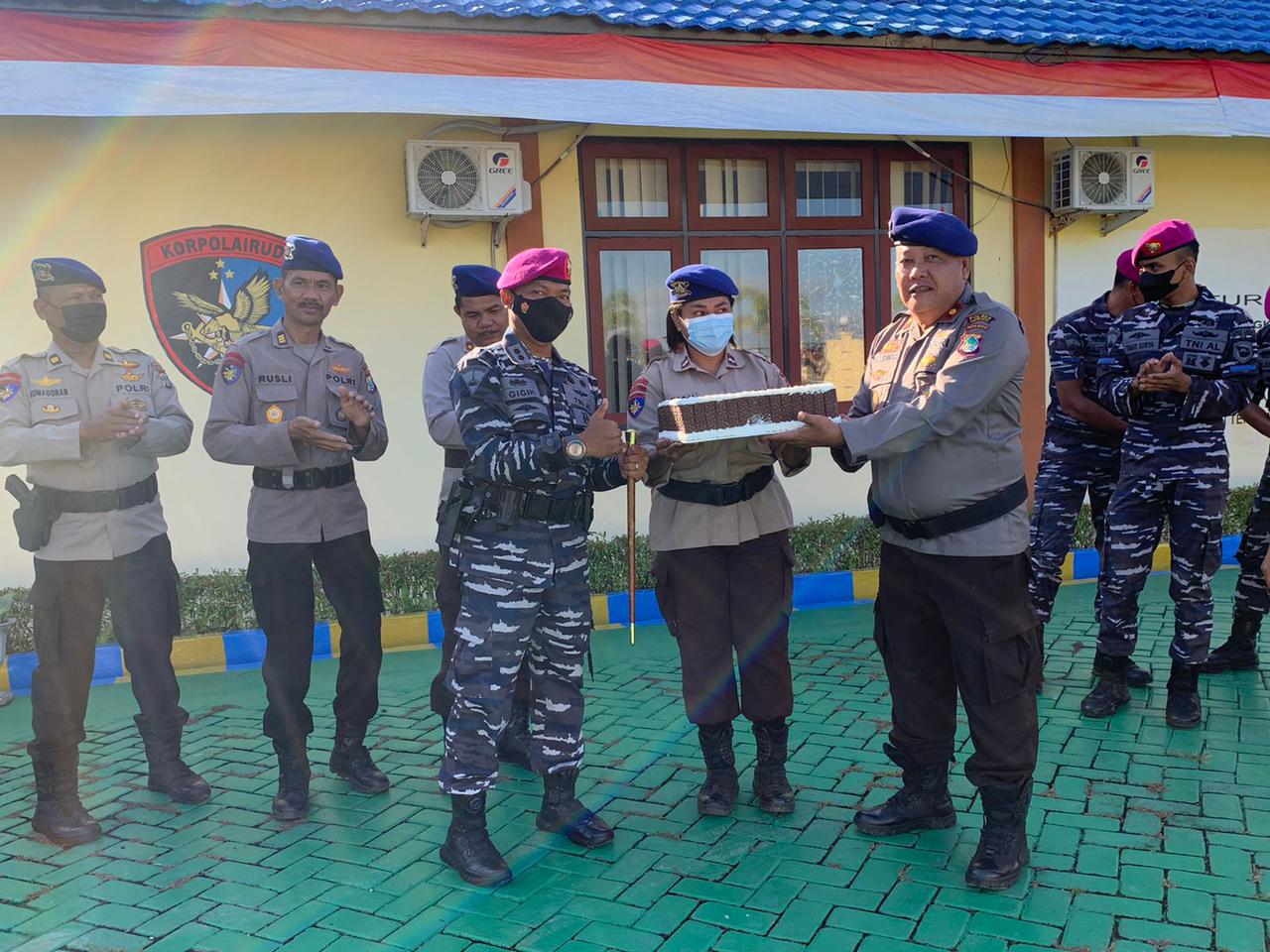 Kedatangan Danyonif 11 Marinir Letkol Mar Gigih Catur Pramono, S.H.,M.Tr.Opsla., beserta prajurit Brigade Infanteri 3 Marinir ke Kantor Direktorat Kepolisian Perairan dan Udara Daerah adalah untuk memberikan kejutan berupa ucapan selamat yang ditandai dengan pemberian kue ulang tahun kepada keluarga besar Ditpolairud yang diterima langsung oleh Kompol Jaingot Banjarnahor, S.H (Kasubbagminopsnal) dengan di dampingi Kompol Tutur Ompusunggul (Kasi Harkan) dan AKP Rusli (Kasubbagrenmin).