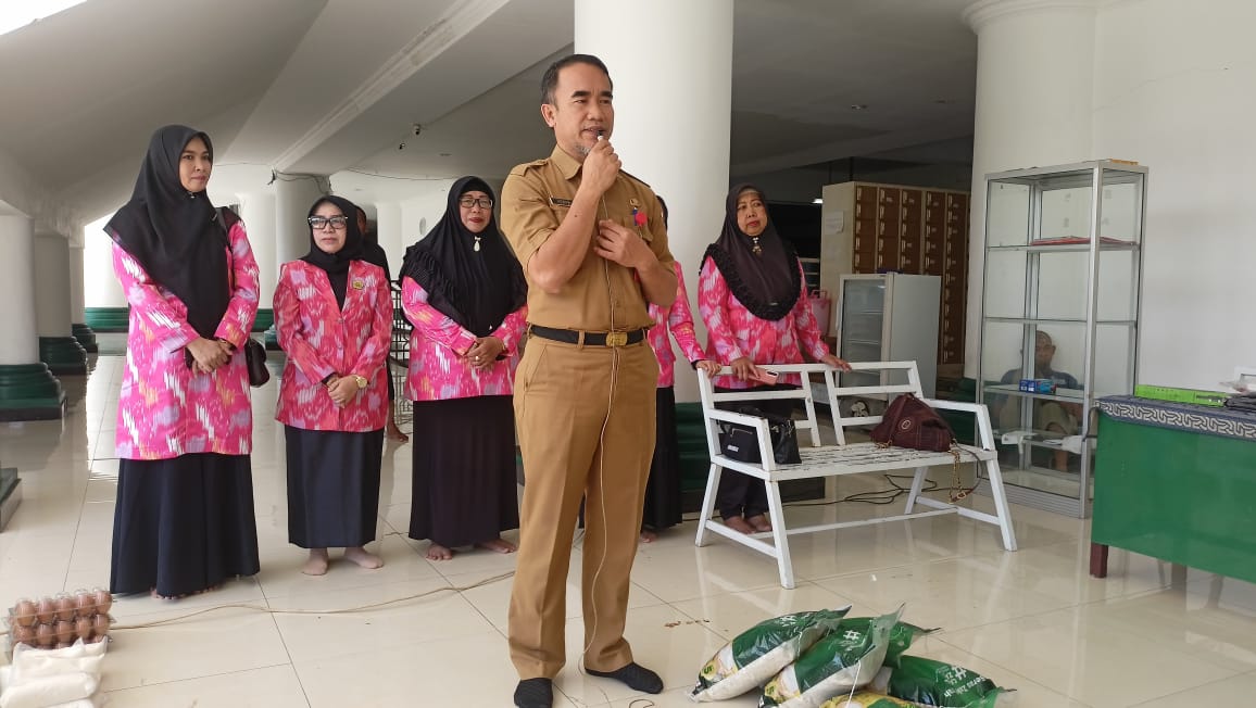 “Sebagai laporan kepada Pak Asisten II, bahwa pada tahun ini Alhamdulillah kita bisa membagikan 106 paket sembako dengan volume 5 kilo beras, 10 butir telur, satu kilo gula putih, satu liter minyak kelapa dan susu,” tutur Pawewang.