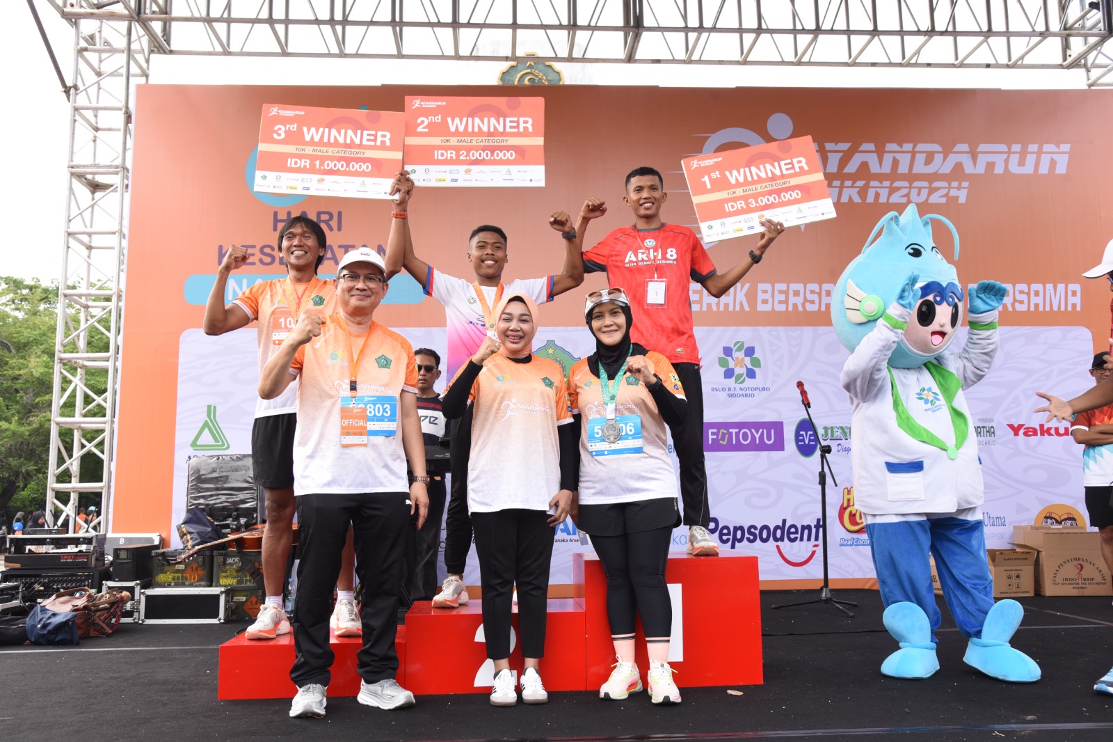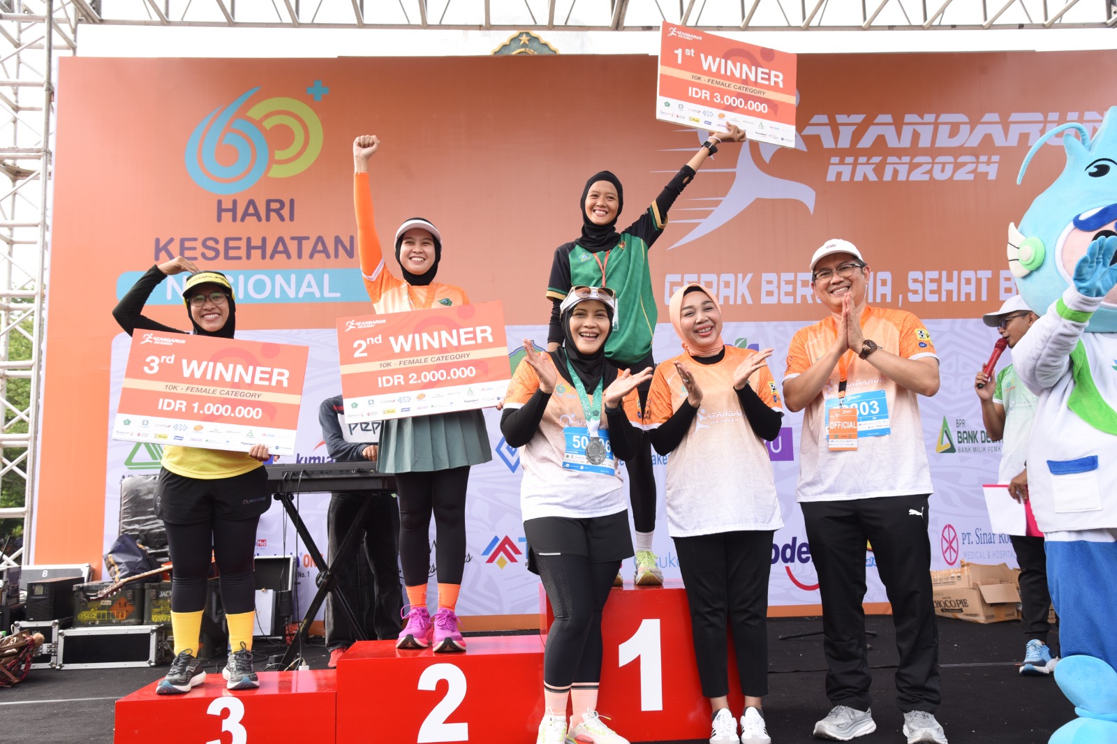 Dalam kesempatan tersebut Ketua TP-PKK Kabupaten Sidoarjo dr. Sriatun berkesempatan hadir untuk menyerahkan hadiah. Mulai dari juara lomba lari 10 km perempuan dan laki-laki serta juara lomba lari 5 km perempuan dan laki-laki. Selain medali juara, juara lomba berhak mendapatkan uang pembinaan.