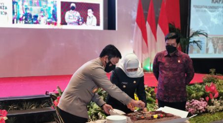 Namun tak disangka, dipenghujung kegiatan Rakor tersebut, Kapolda Jatim mendapat kejutan Kue Tart dan Tumpeng dari Gubernur Jawa Timur sambil di iringi alunan lagu Selamat Ulang Tahun ciptaan grup band Jamrud, selanjutnya Gubernur Jawa Timur berkesempatan memotong Kue Tart tersebut dan diberikan kepada Menteri Agraria Hadi Tjahjanto, selanjutnya Kapolda Jawa Timur memotong tumpeng lalu diberikan kepada Gubernur Jatim Khofifah Indar Parawansa.