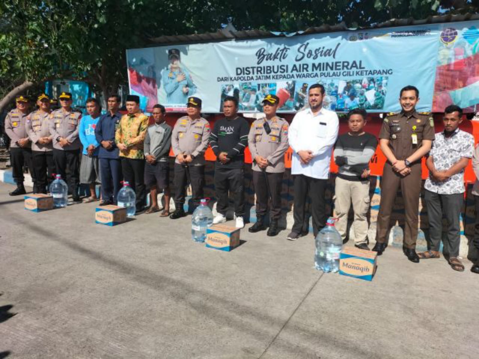 Kapolda Jatim Gelontorkan 957 Galon dan 100 Dus Air Kemasan Untuk Penduduk Pulau Gili Ketapang.