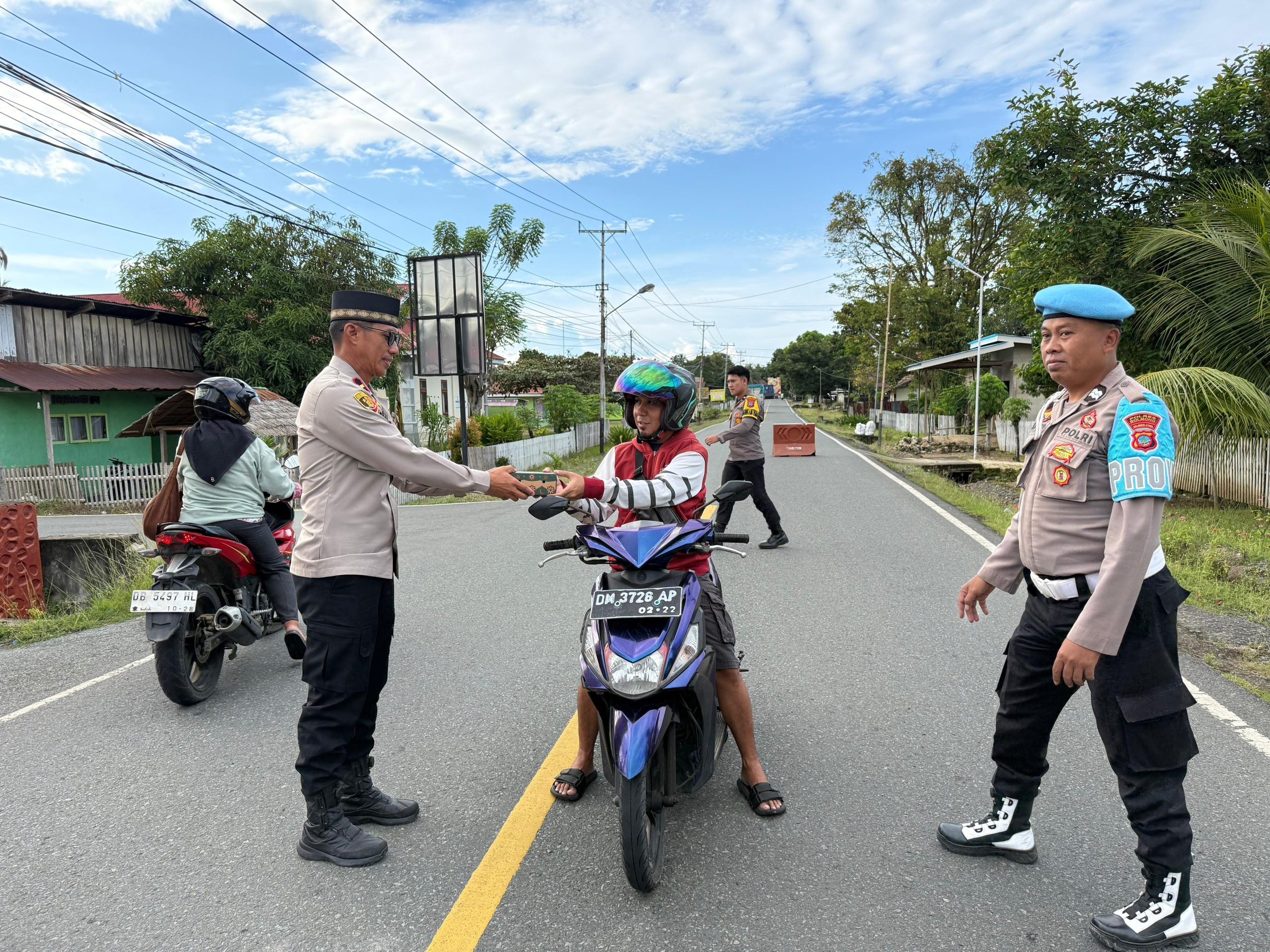 Kegiatan bagi-bagi tak’jil di berikan langsung kepada masyarakat pengguna kendaraan roda dua dan empat, begitu juga mereka yang berjalan kaki melintasi di Mako Polsek Kecamatan Bolangitan Barat Kabupaten Bolaang Mongondow Utara (Bolmut). Ini dalam rangka buka puasa di bulan suci Ramadhan 1447 H.