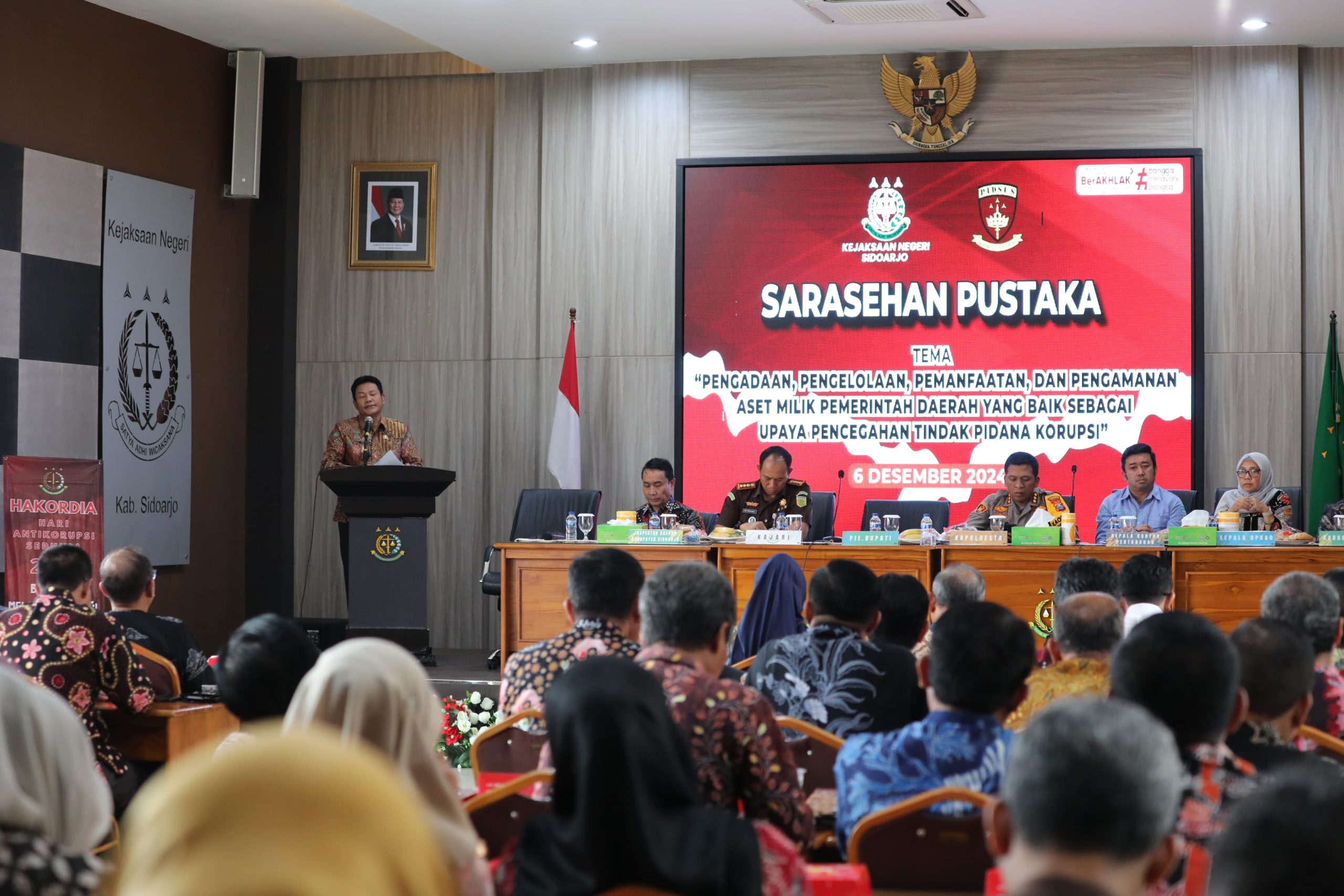 Sidoarjo, paradigmanasional.id – Plt. Bupati Sidoarjo Subandi mengajak semua pejabat dan pegawai di lingkungan Pemkab Sidoarjo untuk bekerja sama menjaga aset daerah demi mencegah terjadinya korupsi. Ajakan dan penekanan pentingnya pengelolaan aset daerah secara transparan dan akuntabel disampaikan Plt Bupati Subandi di sela acara Sarasehan Pustaka dengan Tema ‘Pengadaan, Pengelolaan, Pemanfaatan, dan Pengamanan Aset Milik Pemerintah Daerah yang baik Sebagai Upaya Pencegahan Tindak Pidana Korupsi’ di Aula Kejaksaan Negeri Sidoarjo, Jumat (6/12).