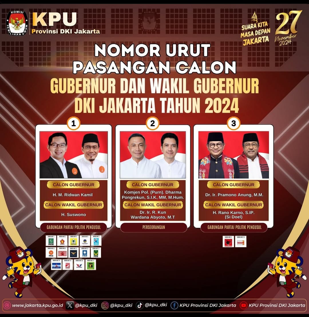 Dilansir dari situs CNN Indonesia sebelumnya, KPU Jakarta telah mengesahkan perolehan suara di seluruh wilayah dalam Pilkada Jakarta 2024. Paslon nomor urut 3 Pramono Anung-Rano Karno dinyatakan unggul di seluruh wilayah.