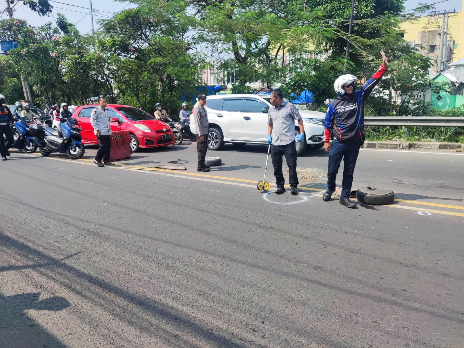 Senggolan tersebut membuat pengendara motor terjatuh, dan seorang lainnya yang ada di boncengan jatuh ke kolong truk hingga terlindas dan meninggal dunia dilokasi kejadian.