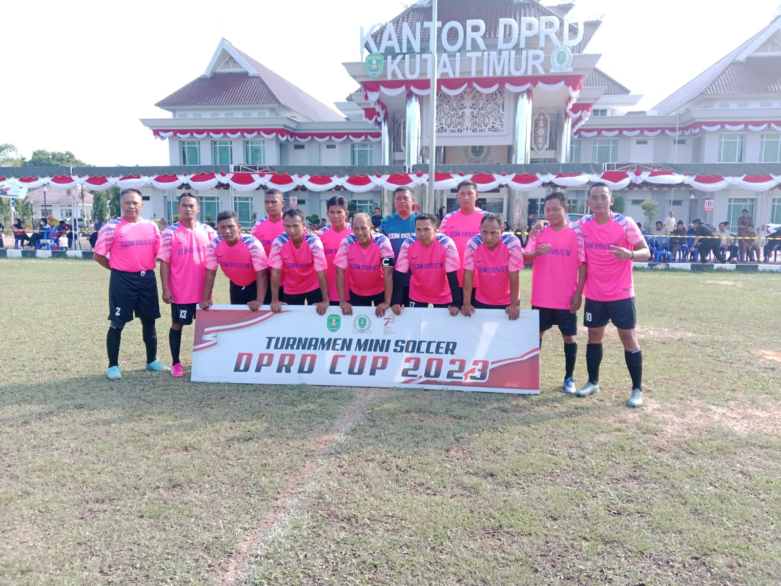 Sangatta, paradigmanasional.id – Kodim 0909/Kutai Timur turut serta memeriahkan peringatan HUT RI ke 78 yang di gelar oleh DPRD Kabupaten Kutai Timur berupa pertandingan olah raga mini soccer yang di laksanakan di lapangan Kantor DPRD Kabupaten Kutai Timur Komplek Perkantoran Bukit Pelangi Sangatta. Dalam hal ini pertandingan mini soccer selain untuk meningkatkan ketahanan fisik juga sebagai jalinan silaturahmi antar pemain dan para penonton serta memperkuat kemanunggalan TNI Rakyat khususnya di Kabupaten Kutai Timur ungkap Pasiops Kodim 0909/Kutai Timur Letda Inf Bagus Aji Suryanata Kusuma yang bertindak sebagai sebagai ketua tim mini soccer Kodim 0909/Kutai Timur.