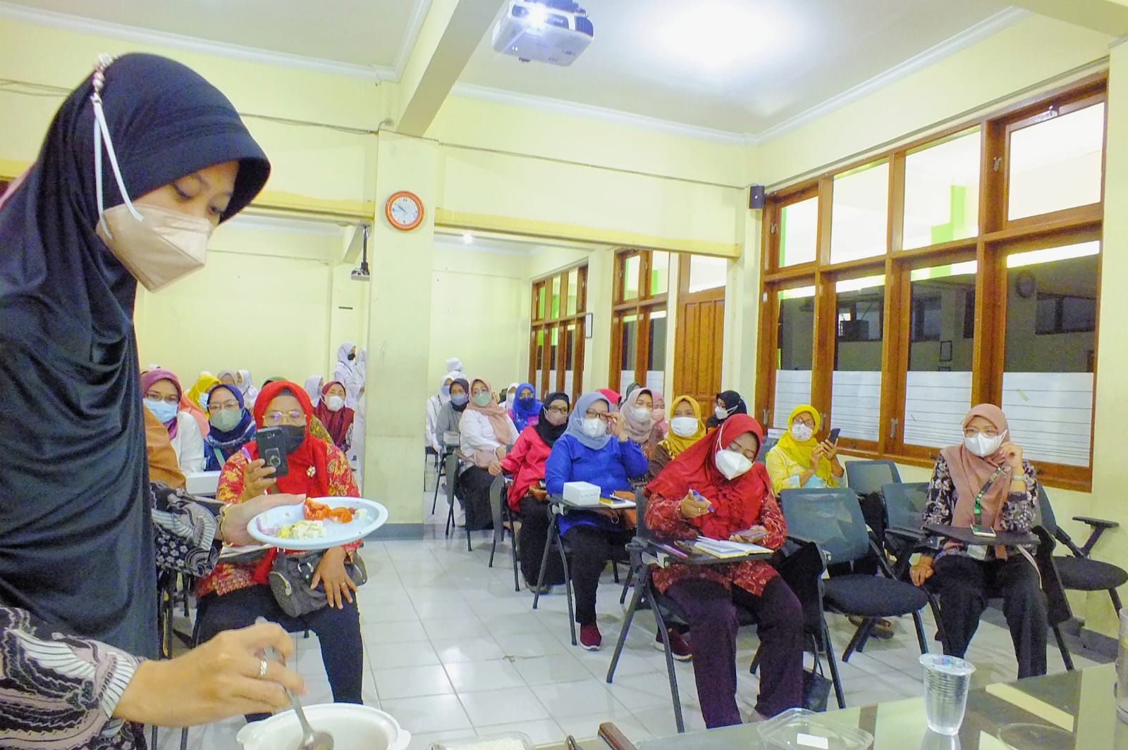 Sedangkan Dosen Kebidanan Unusa, Esty Puji Rahayu, SST., M.Kes menjelaskan, kepada para kader mengenai Pedoman Pemberian Makan pada Anak. Salah satu anggota P2MD juga memperkenalkan kepada para kader tentang kegiatan Program Pemberdayaan Masyarakat Desa (P2MD) dengan program GARASI (Gerai Makanan Pendamping ASI) Sebagai Upaya Menurunkan Stunting di Kelurahan Wonokromo.