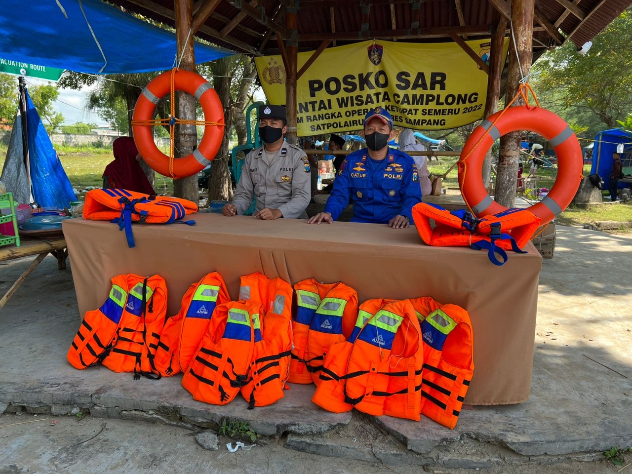 Selain mencegah penyebaran Covid-19, Sat. Polairud Polres Sampang juga sudah menyiapkan kapal-kapal Polisi di perairan Pantai Camplong sekaligus juga menyiapkan alat keselamatan berlayar yang bisa dipinjam gratis pengunjung.