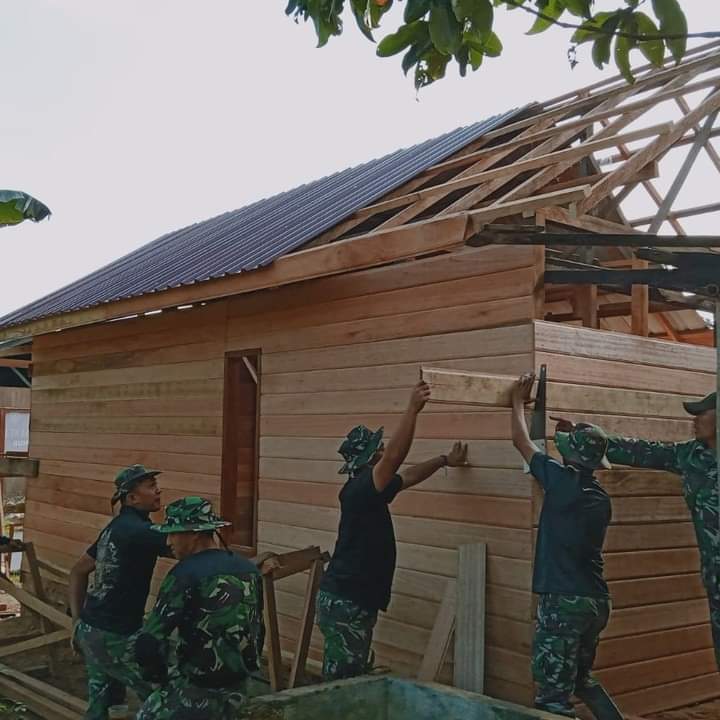 “Walau saya seorang TNI namun belum tentu saya tidak bisa jadi tukang. Nyatanya saat ini saya bisa melakukan pemasangan papan lantai tersebut. Ya harapan saya rumah bapak Sopingi ini segera jadi dan dapat segera ditempati oleh beliau bersama keluarganya,” katanya.