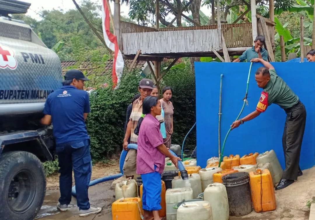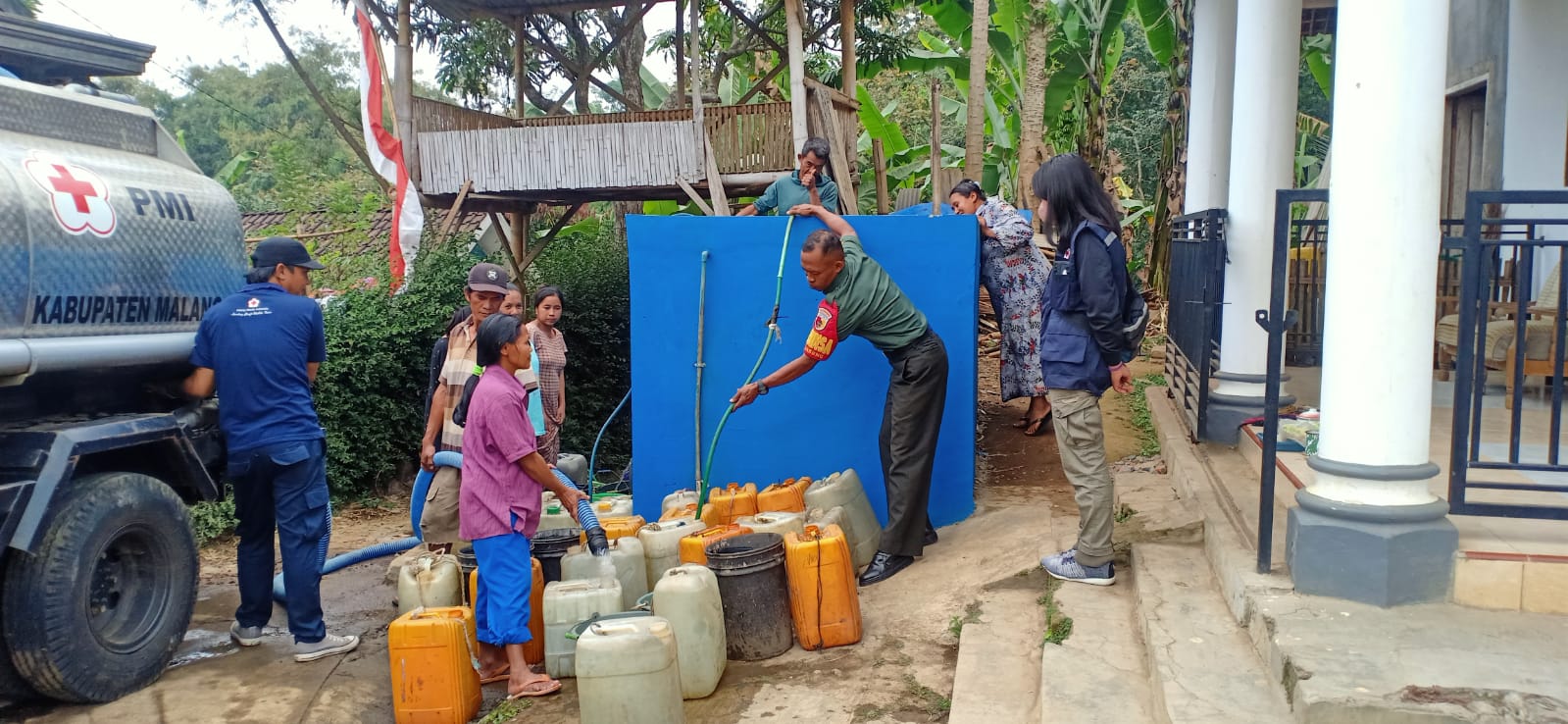 Kegiatan pengiriman bantuan air bersih tersebut di tujukan kepada daerah yang terdampak karena kekurangan air akibat sumber mata air mengecil, bantuan tersebut sebanyak 60.000 liter yang d bawa mobil tengki air dan diserahkan langsung oleh Petugas PMI Kabupaten Malang.