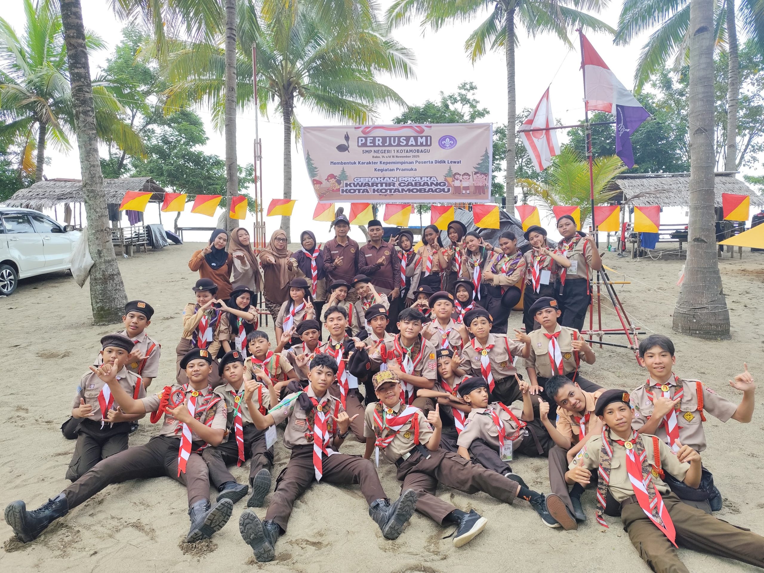 KOTAMOBAGU, Paradigmanasional.id Dengan tema “Membentuk Karakter Kepemimpinan Peserta Didik Lewat Kegiatan Pramuka”, SMP Negeri 1 Kotamobagu menggelar kegiatan Perkemahan Jumat Sabtu Minggu (PERJUSAMI) di Pantai Babo desa Babo Kebupaten Bolaang Mongondow (Bolmong), Jumat, tanggal 14 sampai dengan 16 November 2025.