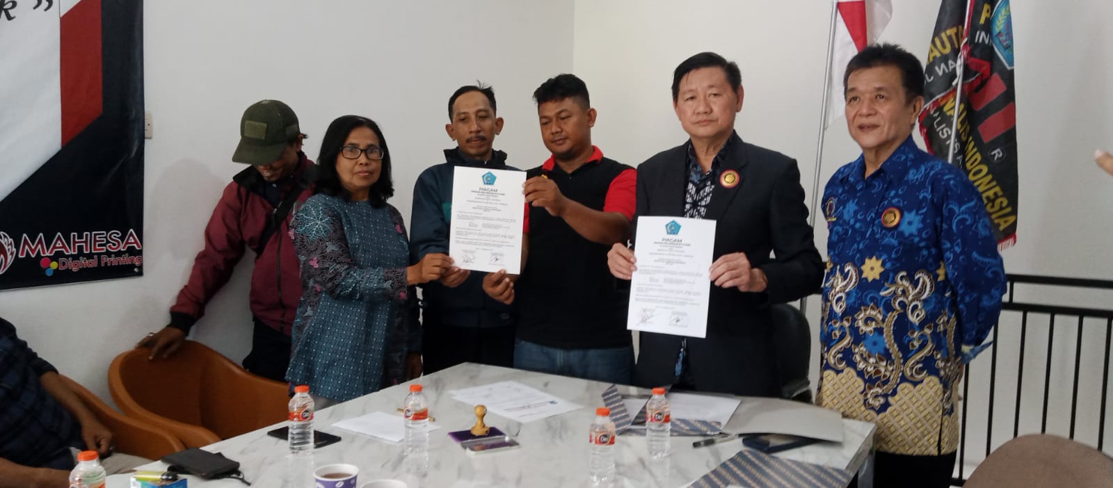 Ketua Umum PJI Hartanto Boechori dengan didampingi Pengurus DPP PJI Gunaryo Handajia dan Sutriono/Pri menyerahkan langsung fisik Surat Keputusan dan melakukan penanda-tanganan Piagam Penyerahan Surat Keputusan DPC PJI Kediri serta seremonial serah terima Stempel DPC PJI Kediri di Sekretariat DPC PJI Kediri, Cluster BanaranNolo Elite, Minggu 18/09/2022.