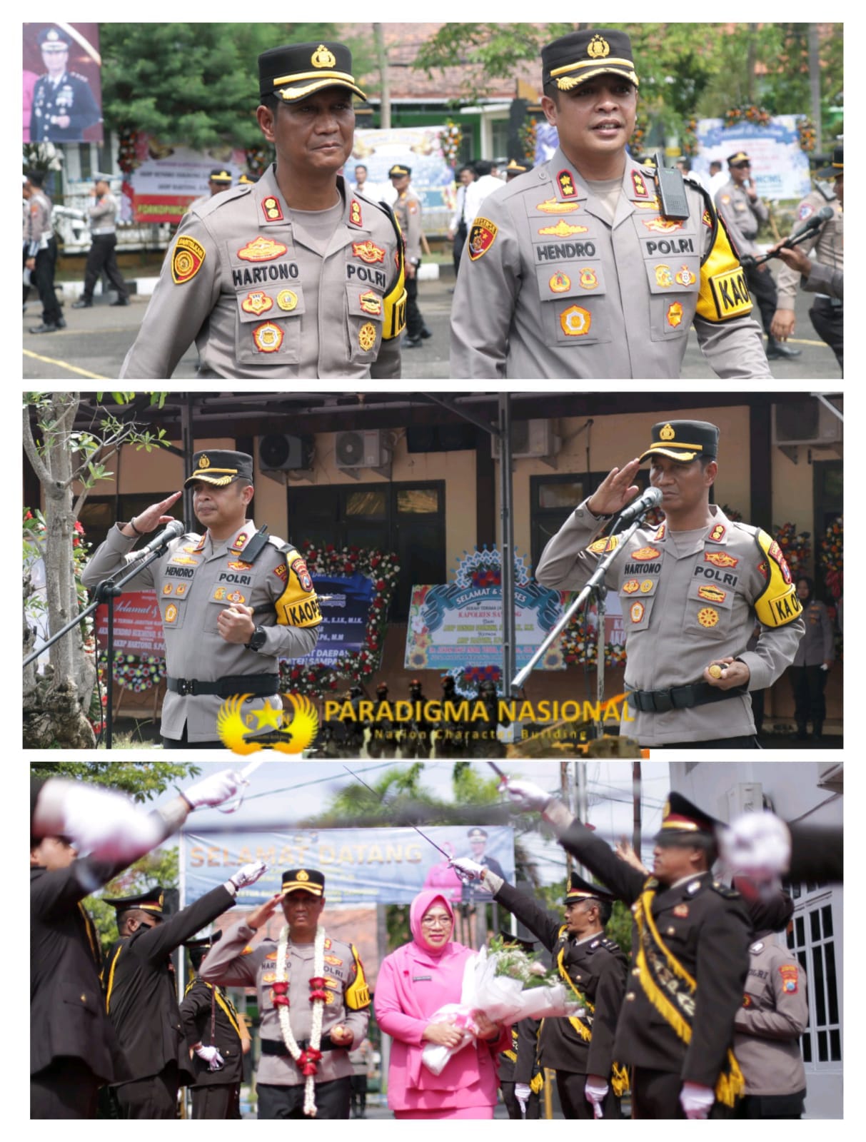 Saat akan memasuki Mapolres Sampang, Wakapolres Sampang Kompol Hosna Nurhidayah menyambut AKBP Hartono beserta istri di pintu masuk sisi utara untuk melaporkan situasi Kamtibmas wilayah hukum Polres Sampang dan Polsek jajarannya.