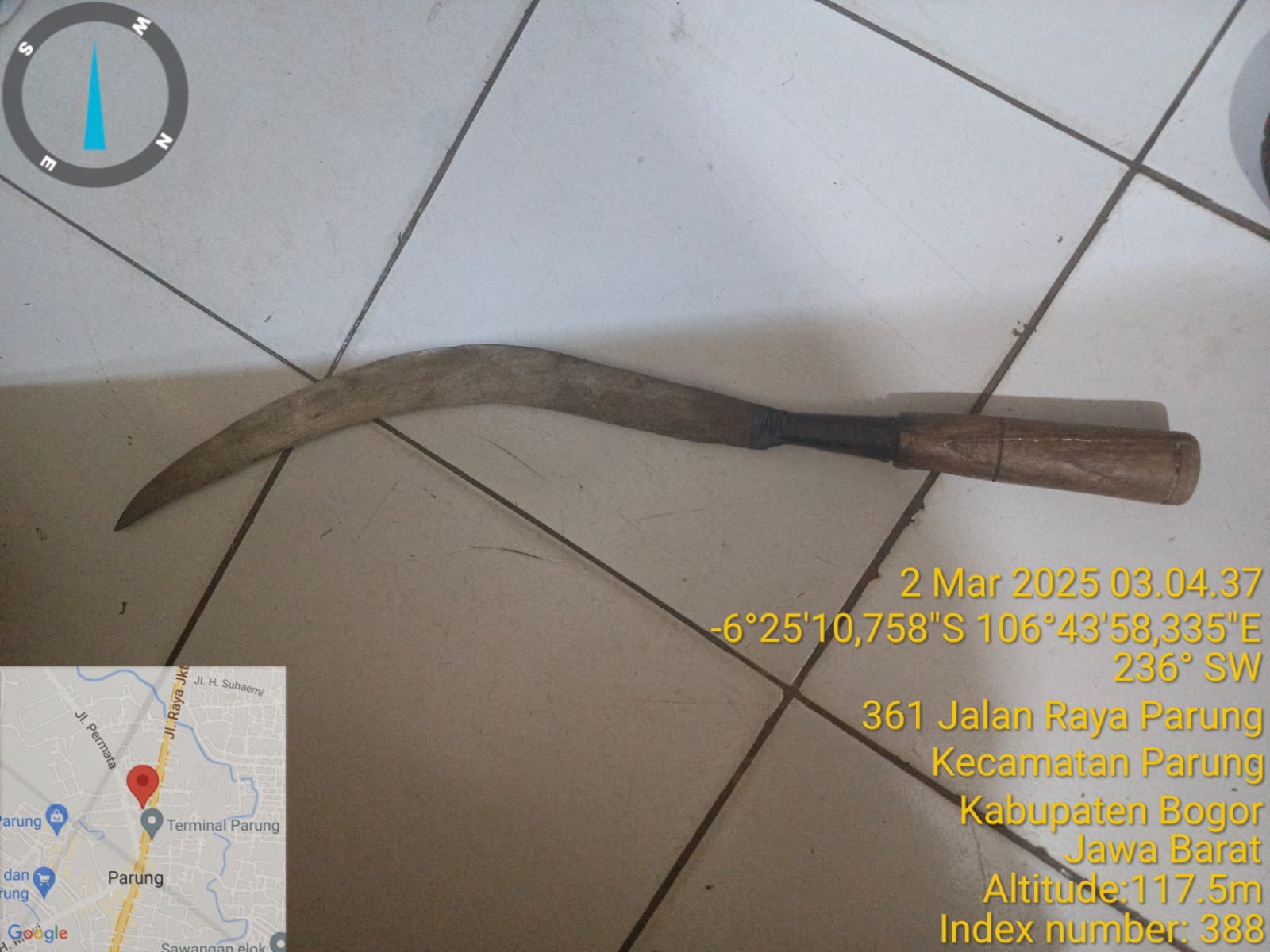 -1 (satu) bilah celurit, ukuran sedang, yang gagangnya kayu warna coklat