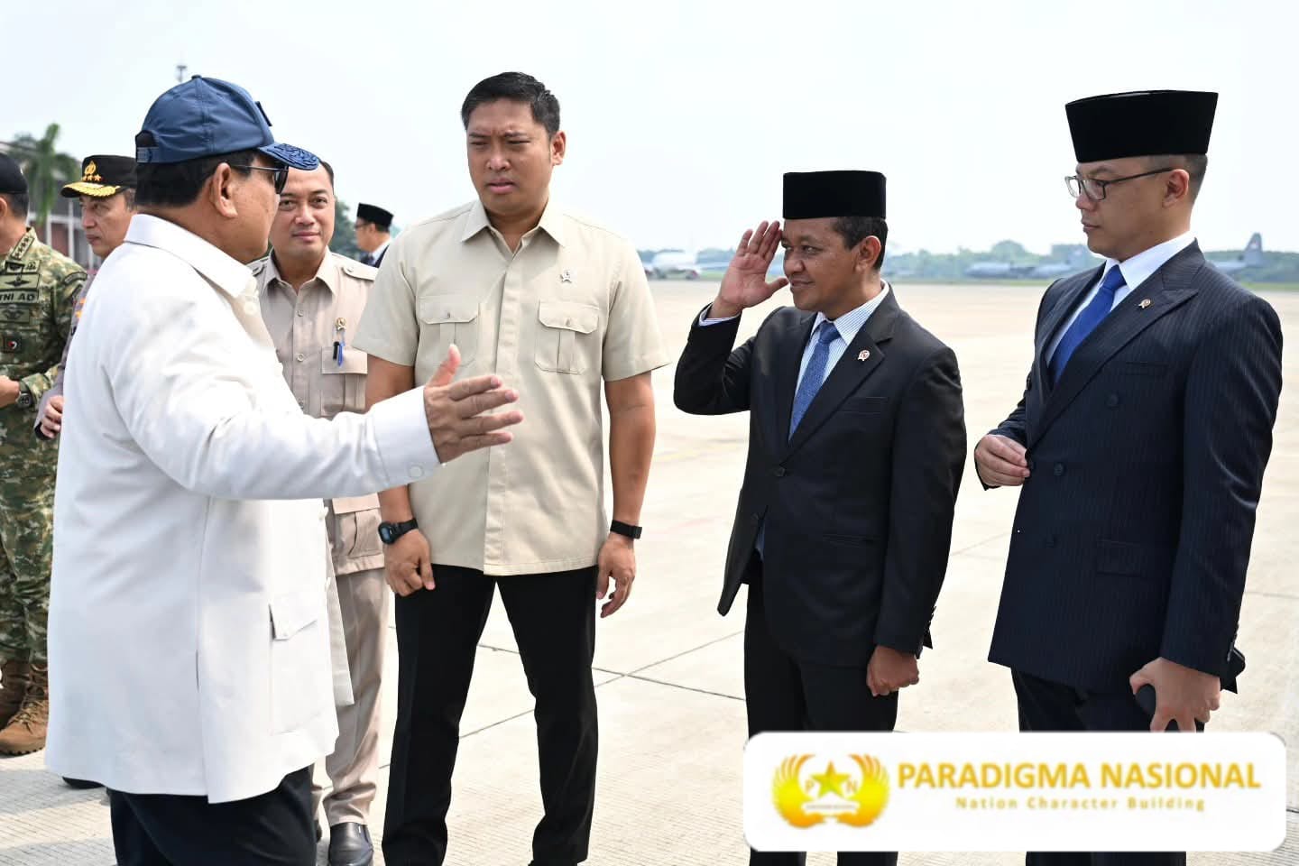 Jakarta, paradigmanasional.id – Presiden Prabowo berangkat menuju Tokyo, Jepang di antar oleh ke Bandara di dampingi oleh Wakil Ketua DPR RI Prof. Sufmi Dasco Ahmad dan Menteri Pertahanan Sjafrie Sjamsoeddin bersama Mensesneg Prasetyo Hadi, Panglima TNI dan Kapolri melepas keberangkatan Presiden Prabowo Subianto di Bandara Halim Perdanakusuma, Minggu 29 Maret 2026 pukul 10.30 WIB.