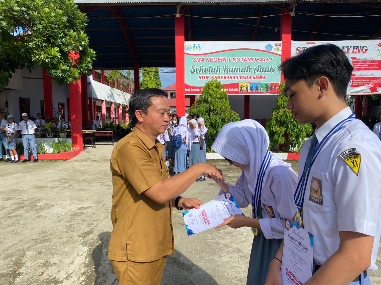 Raih Medali Emas, Dua Siswa SMA N I Kotamobagu di Berikan Reward dan Piagam Penghargaan