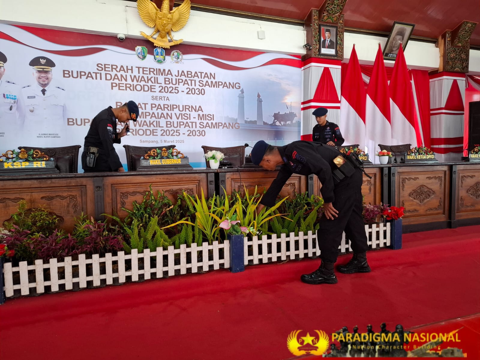 Selain personil Polres Sampang, pengamanan kegiatan Sertijab Bupati dan Wakil Bupati Sampang dibantu personil TNI dan Pemkab Sampang.