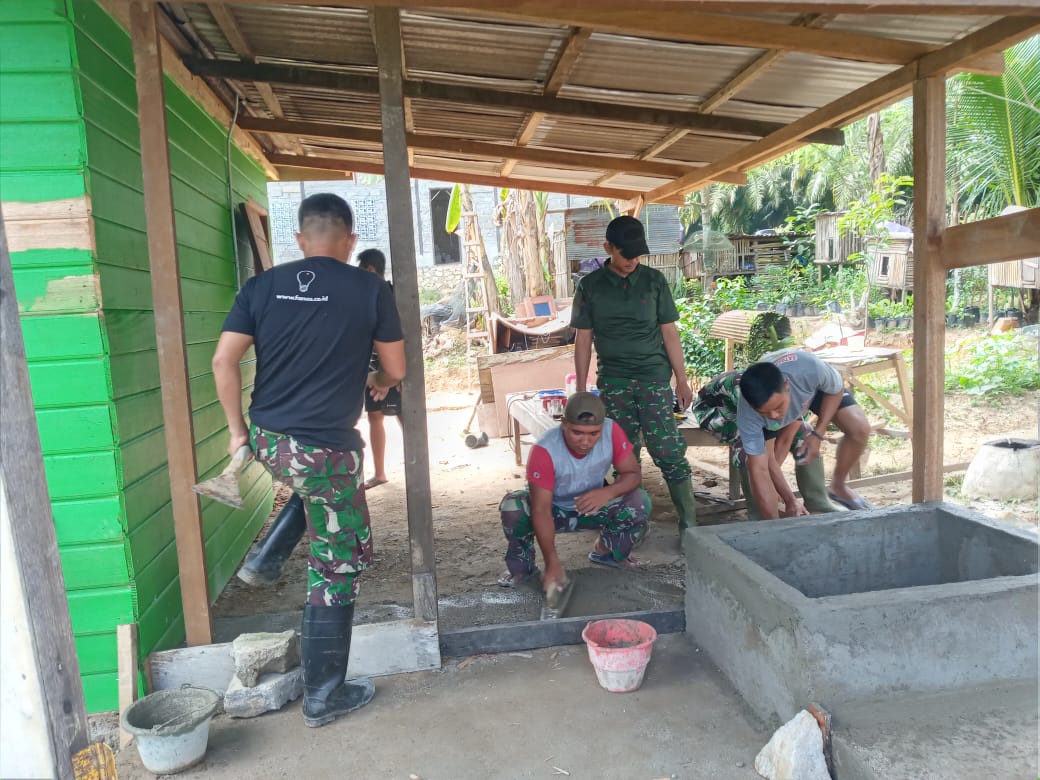 Kutai Timur, paradigmanasional.id – Satgas TMMD ke 117 Kodim 0909/Kutai Timur tahun 2023 terus bergerak bersama masyarakat dalam proses pengerjaan rumah layak huni milik bapak Sopingi Desa Suka Maju Kecamatan Kongbeng Kabupaten Kutai Timur sudah memasuki tahap bagian luar rumah berupa pembuatan bak mandi sebagai salah satu syarat rumah sehat ujar Pasiter Kodim 0909/Kutai Timur Kapten Inf Arif Safardiyatno.