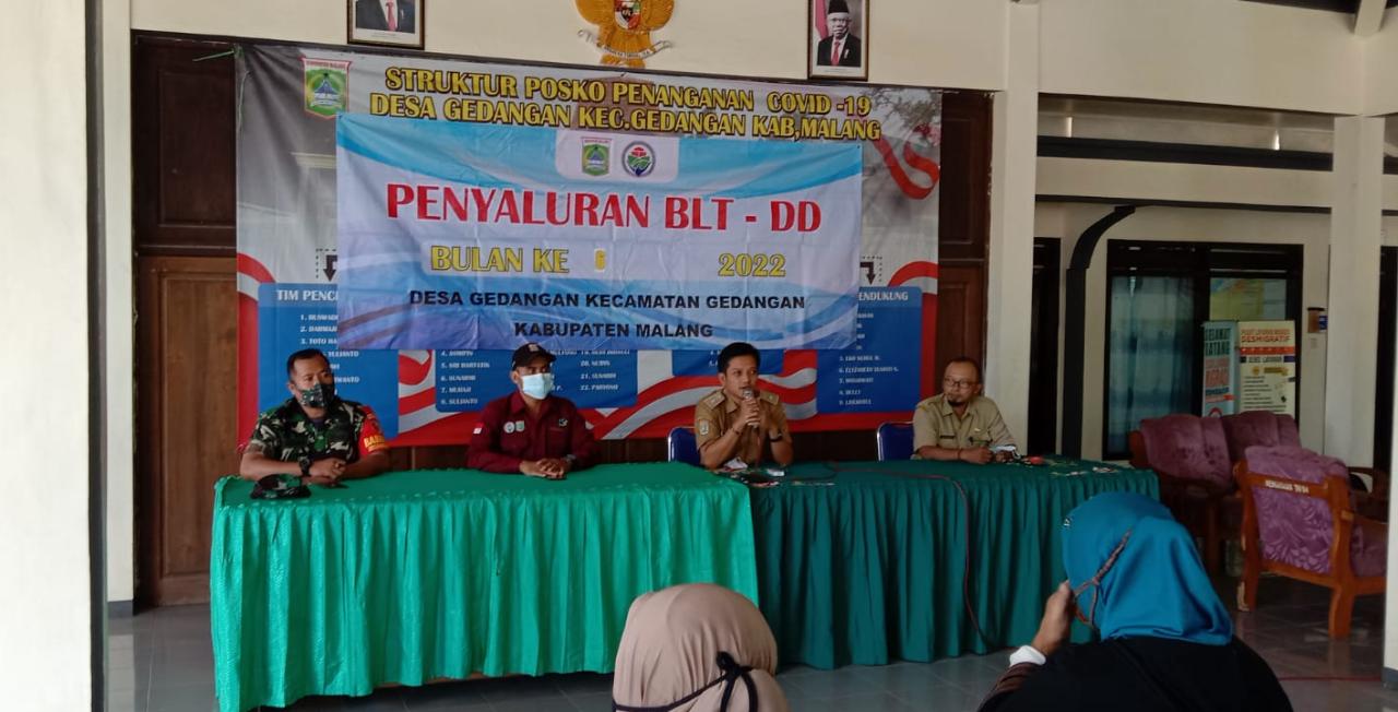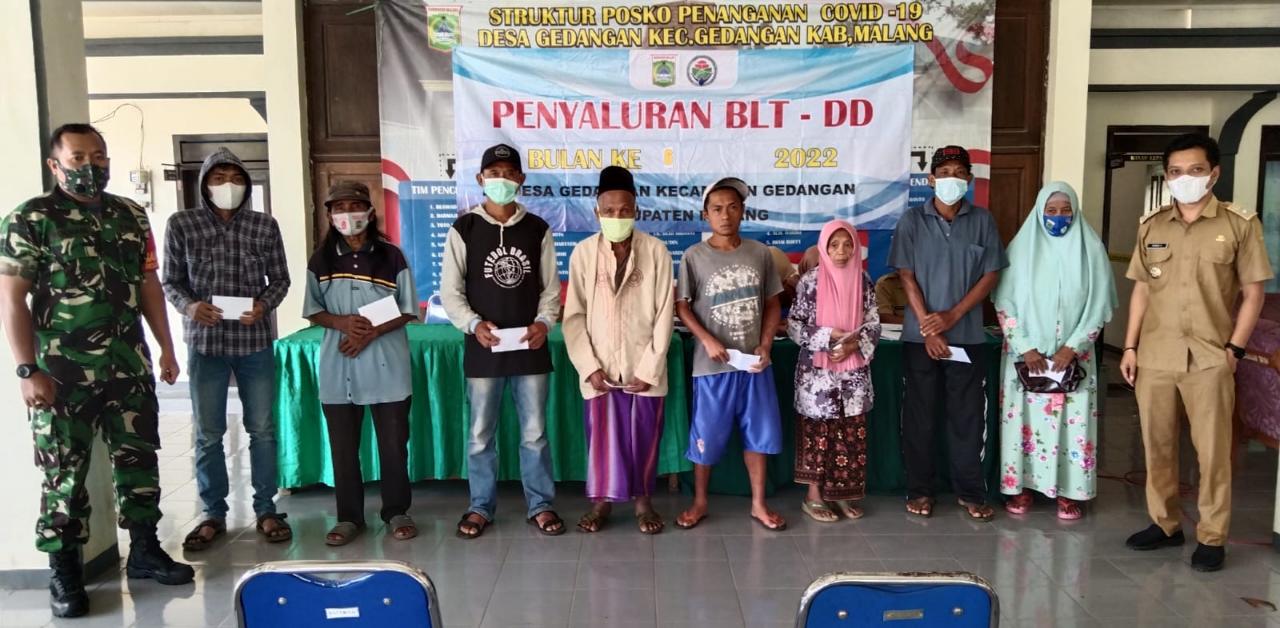 Pengawasan dan pendampingan Bantuan Langsung Tunai Dana Desa (BLT-DD) dilakukan oleh Babinsa bersama dengan Bhabinkamtibmas serta pemerintah Desa Gedangan dengan tujuan memberi rasa aman kepada para warga yang menerima bantuna dan petugas dalam melaksanakan pembagian BLT ini.