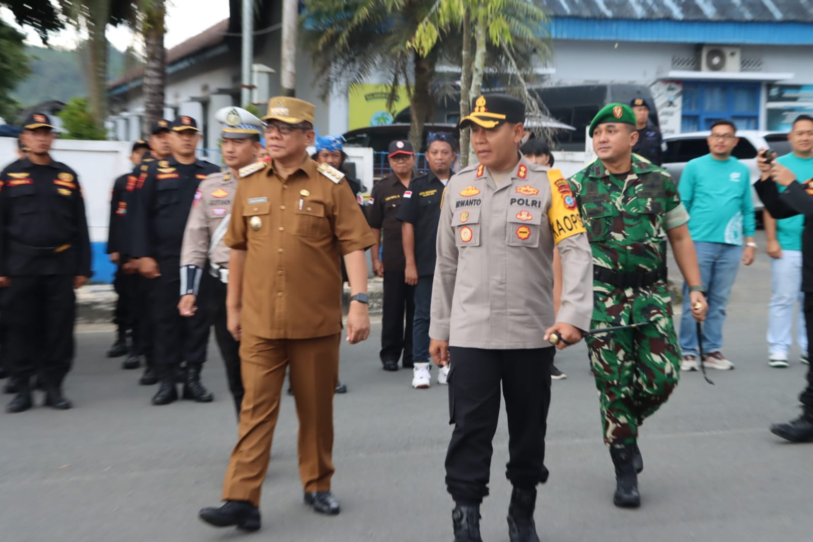 Kapolres Kotamobagu AKBP Irwanto didampingi pejabat Walikota Kotamobagu Abdullah Mokoginta serta Dandim 1303 Bolmong Letkol. Inf. Fahmil Harris mengecek langsung personil gabungan yang akan melaksanakan pengamanan pergantian tahun di wilayah hukum Polres Kotamobagu.