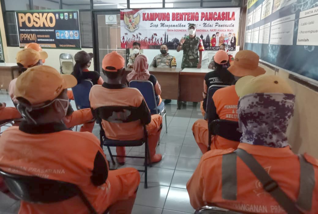 JAKARTA TIMUR, paradigmanasional.id – Babinsa Koramil 07/Cipayung Peltu Tasrif, Serma Bambang dibantu Bhabinkamtibmas dan Satpol-PP Kelurahan Ceger , memberikan materi Wawasan Kebangsaan kepada karyawan PPSU bertempat di Aula Jln SMPN 160 RT. 02/05 Kelurahan Ceger Kecamatan Cipayung, Rabu (09/03/22).