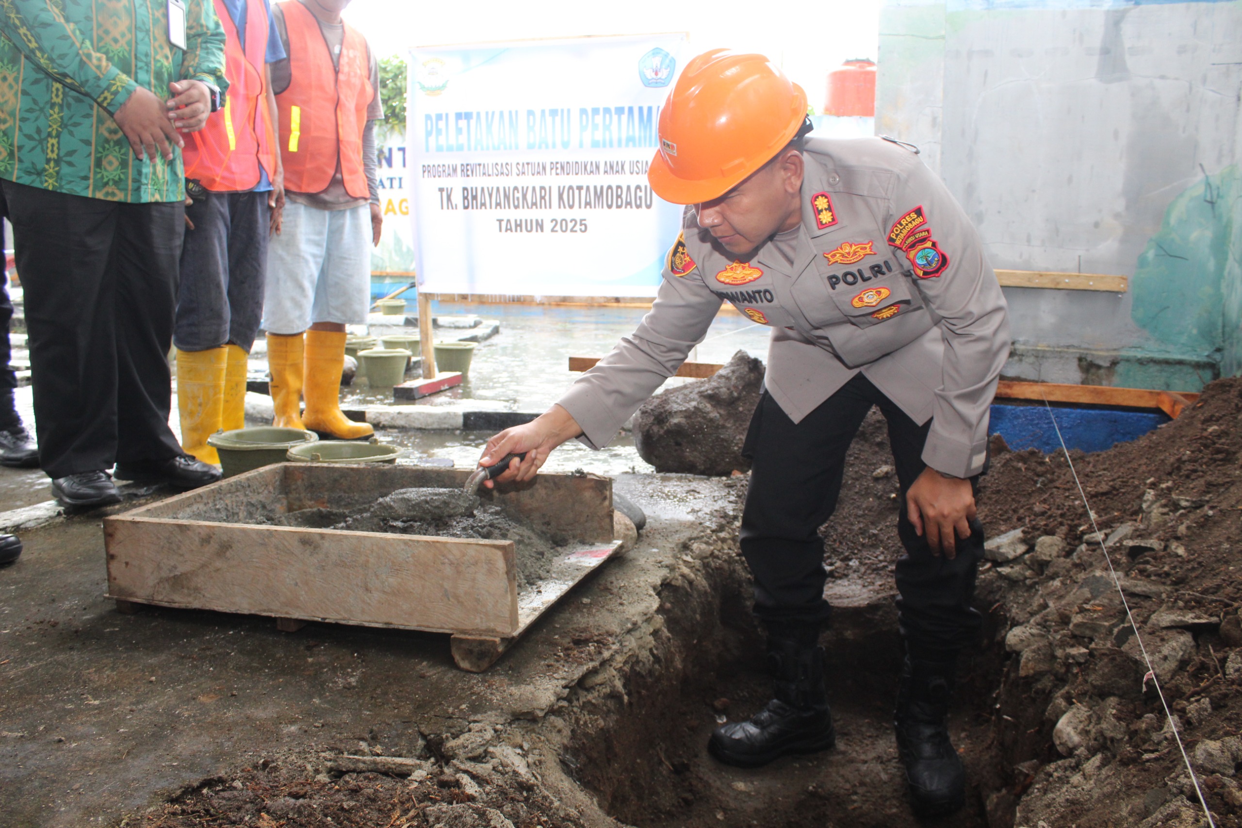 KOTAMOBAGU, Paradigmanasional.id– Kapolres Kotamobagu AKBP Irwanto S.I.K., M.H. melaksanakan peletakan batu pertama sebagai tanda dimulainya Program Revitalisasi Satuan Pendidikan Anak Usia Dini (PAUD) TK Bhayangkari Kotamobagu Tahun 2025, pada Kamis (21/8/25).