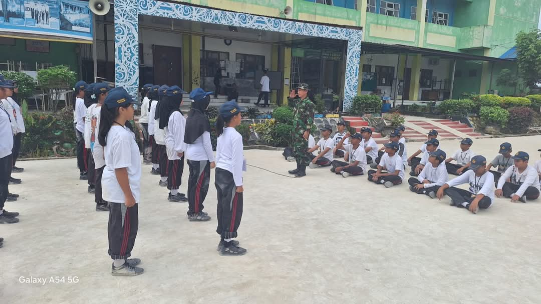 Tingkatkan Disiplin Dan Mental Personil Koramil 0909-06 Bengalon Beri Latihan Ketrampilan Dan Baris Berbaris Siswa Siswi SMP N 1 Bengalon