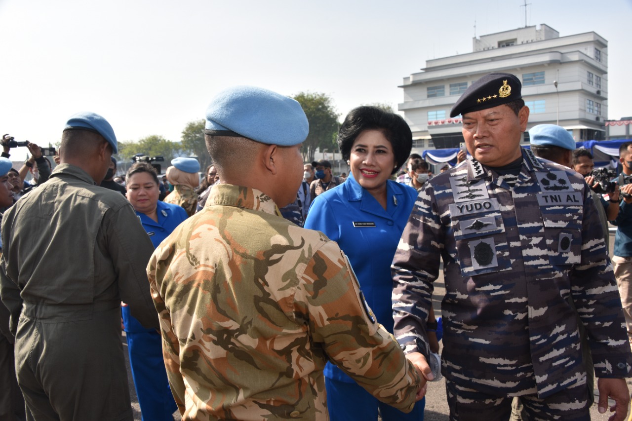 Jawa Timur, paradigmanasional.id – Setelah menuntaskan misi perdamaian dunia sebagai Satuan Tugas (Satgas) Maritim TNI XXVIII-M UNIFIL di Lebanon, Kasal Laksamana TNI Yudo Margono didampingi Ketua Umum Jalasenastri Ny. Vero Yudo Margono menyambut KRI Sultan Iskandar Muda (SIM) – 367 di Dermaga Madura Tengah, Koarmada II, Ujung Surabaya, Sabtu, (3/9/2022).